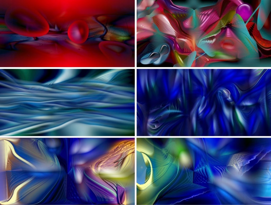 Dada la importancia del color en mi obra y de mi sensibilidad sinestésica, no podía ignorar las frecuencias sonoras de la música. En un principio pensaba de utilizar la voz hablada que varía en un margen de alrededor de doce tonos. Unificando las cifras que ofrecen los diferentes autores, podemos acotar la frecuencia de la voz masculina entre 50 y 200 hercios y la femenina entre 150 y 350 hercios. Cada imagen tendrá un código QR que irá a una nueva página web en construcción. Las obras expuestas se convertirán en un conjunto de 14 vídeos donde cada obra se difuminará en la siguiente con una banda sonora distinta según el enlace previsto.